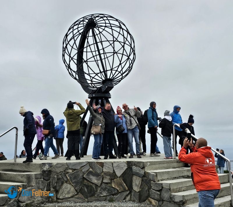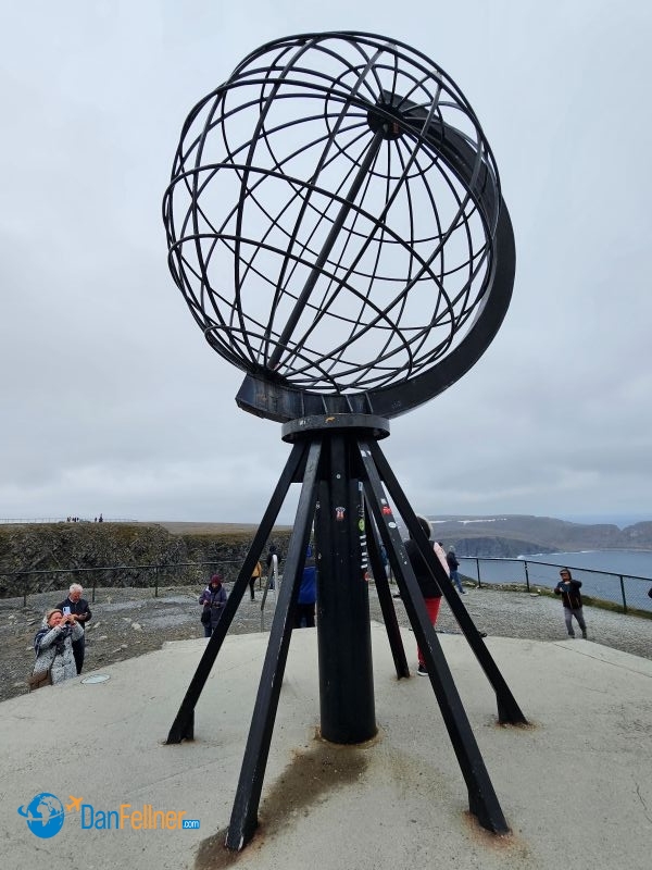 The globe statue at Nordkapp, Norway, which marks the northernmost point of mainland Europe, is a popular tourist attraction.